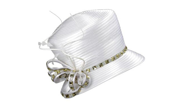 優(yōu)質(zhì)的環(huán)保色丁布料,塑造出了一個(gè)高大挺括的帽身,金銀剔透的裝飾更增添了它的高貴。