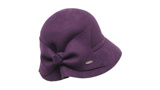 100%純羊毛的帽子,紫色的盆帽采用側面褶皺設計,獨特而鮮明,蝴蝶結大帽身很保暖。